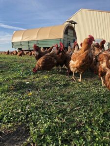 By 2018, Brian started working on the farm full time and expanded the farm’s product line. “He was really able to build our business scale when he came in full time,” Stacie said. Egg production became more efficient, and they began chicken meat production and specialty items as well.