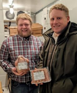 Brian Anderson and Phil Riehm with frozen chicken