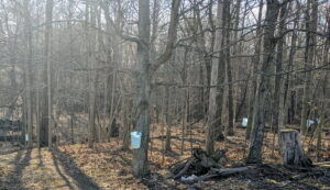 The Brundages have about 2,000 trees tapped each year, and another 200 “in tubing”, which means a system of tubes is attached that allows the sap to run by gravity to a single collection point.