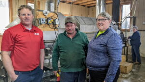Farmer Phil left, Tom Brundage center, Barb Brundage Holman right