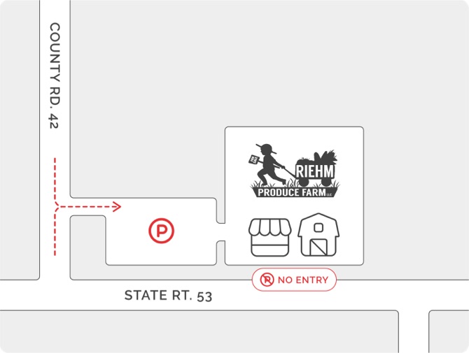 Our new parking lot is located on County Road 42. Please note that the entrance off of Route 53 is closed.